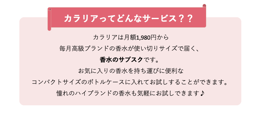 カラリアは、気になる香水を毎月使い切りサイズでお試しできるサービスです。